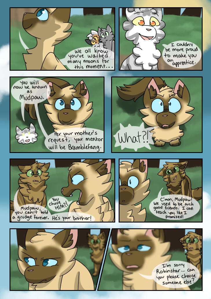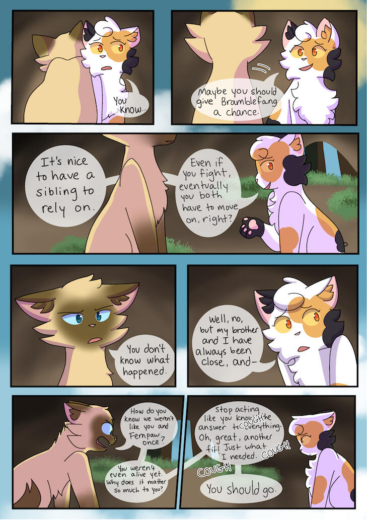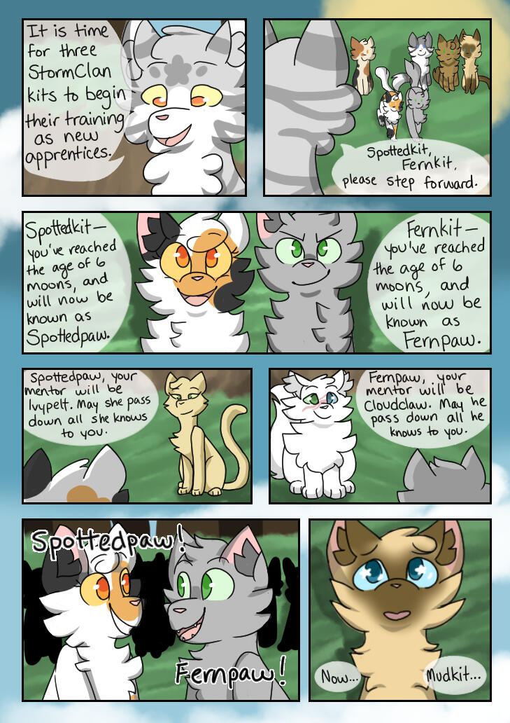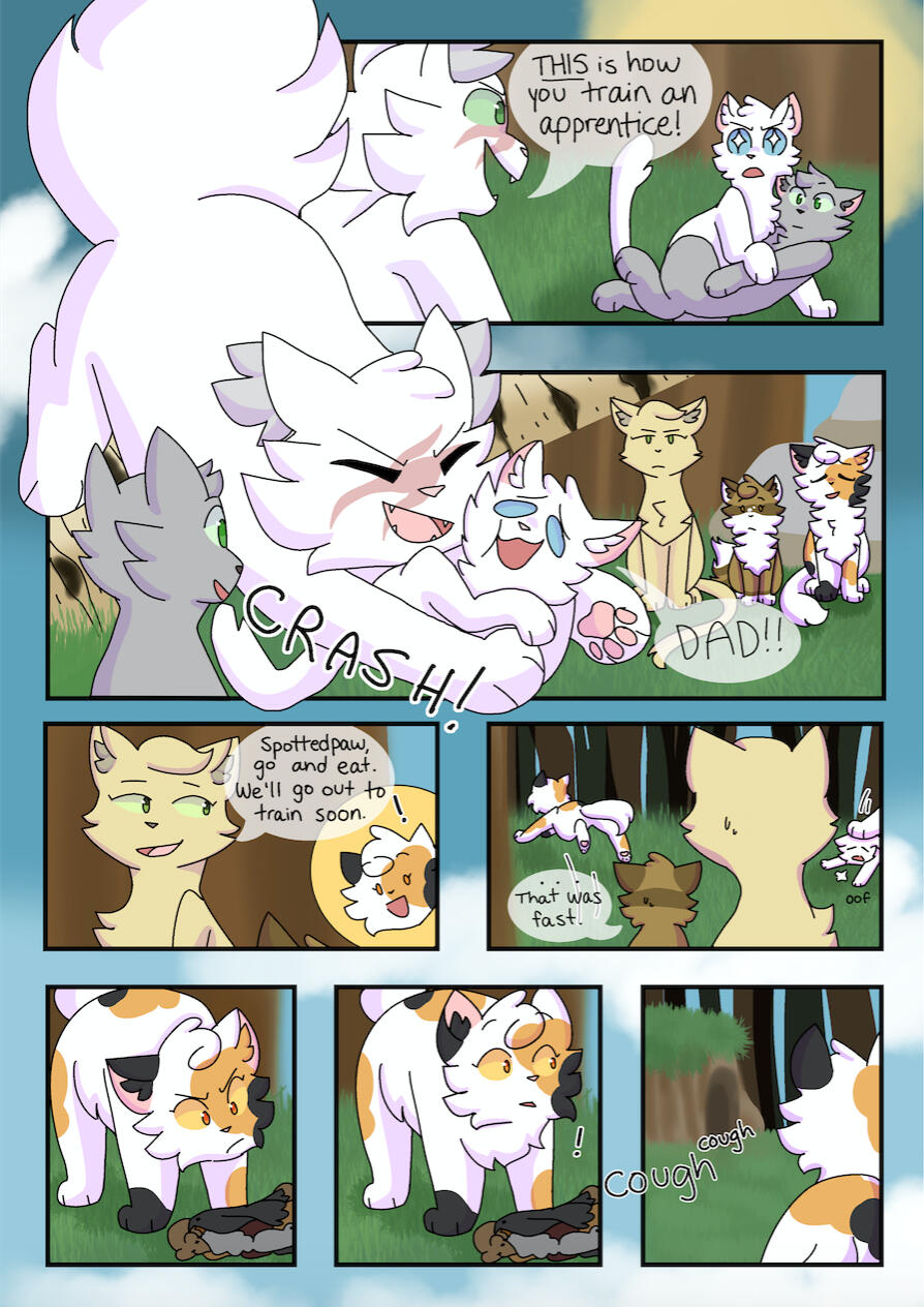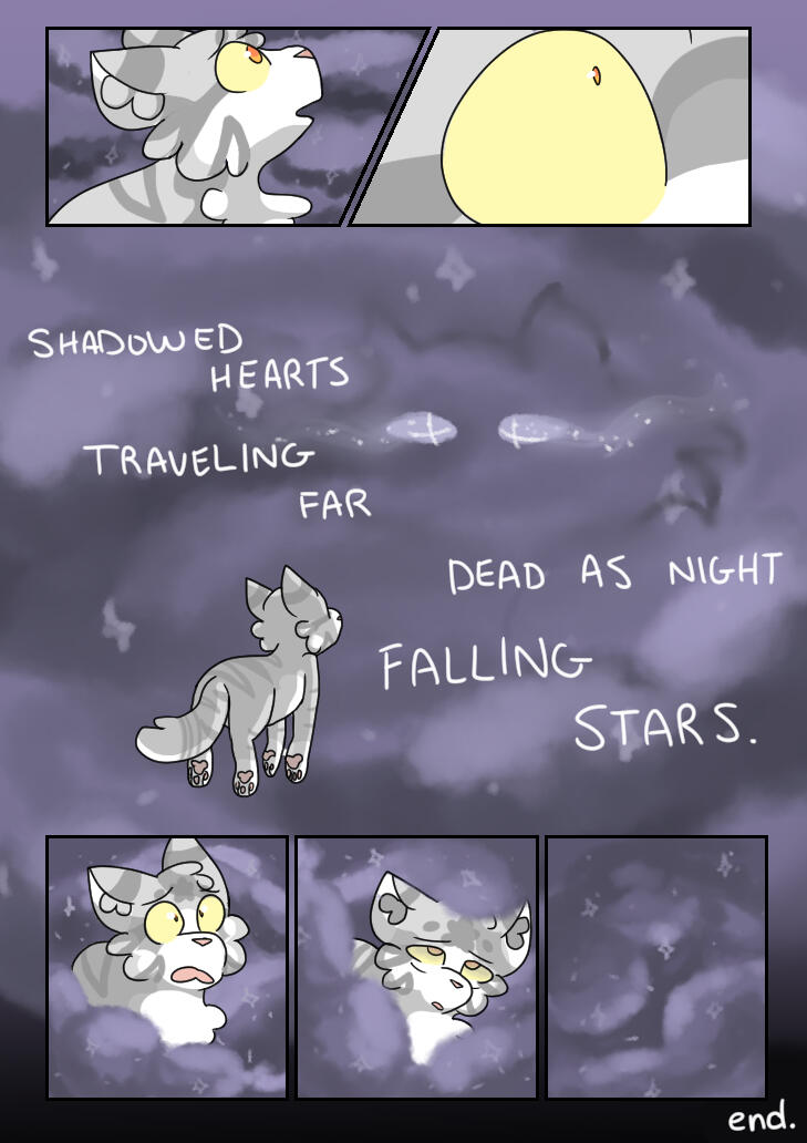 Falling Stars is my ongoing Warriors OCs comic. It can be read on my Instagram under the hashtag #warriorsfallingstars or on a highlight on my profile. I'll also put the pages here, but it may not be updated as quickly!